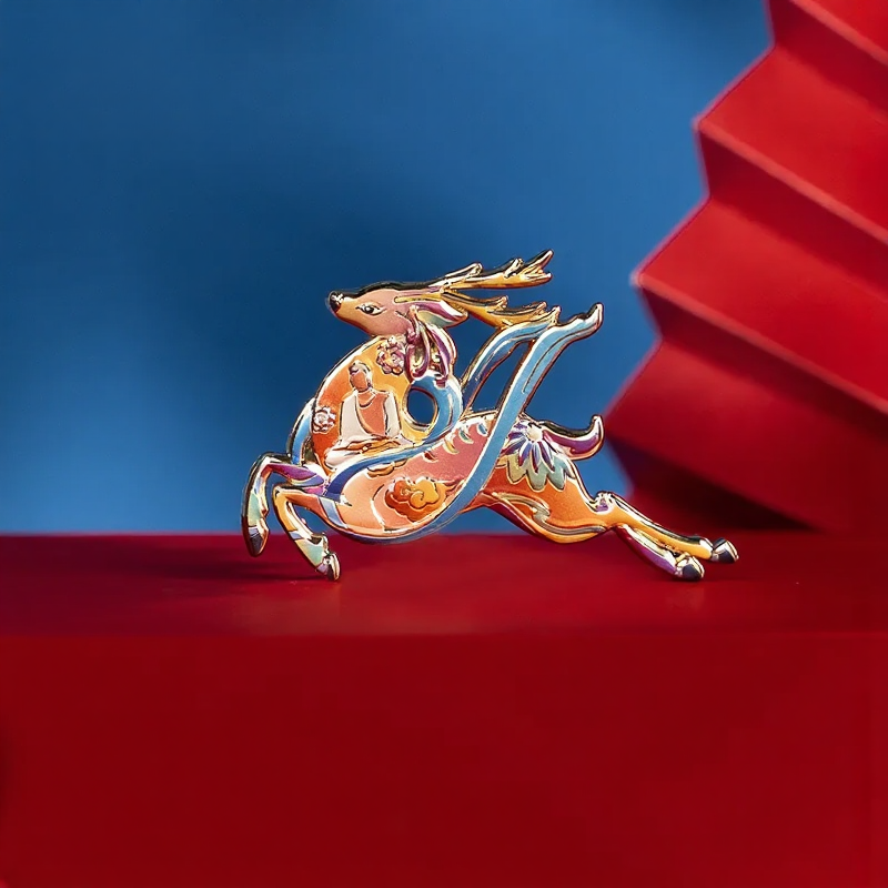 Crafted from high-quality metal with intricate relief carving, the fridge magnet vividly reproduces the artistic details of Dunhuang murals. The Nine-Colored Deer’s graceful posture and the lotus’s delicate petals are brought to life with layered textures—you can feel the subtle indentations with your fingertips, adding a tactile dimension to the visual beauty. The vintage-inspired color palette (muted golds, deep blues, and earthy tones) echoes the faded grandeur of ancient murals, avoiding overly bright hues that feel cheap. This isn’t a mass-produced plastic trinket; it’s a small work of art that showcases the craftsmanship of Dunhuang-inspired design.